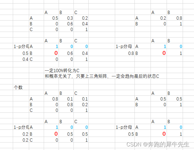在如果把 转移概率矩阵搞成非上三角的,而是全的,就更复杂了