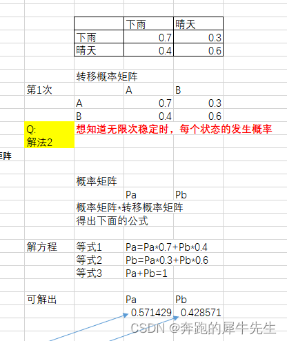 3.2 方法2:使用公式 [Pa,Pb]= [Pa,Pb] * [转移概率矩阵]