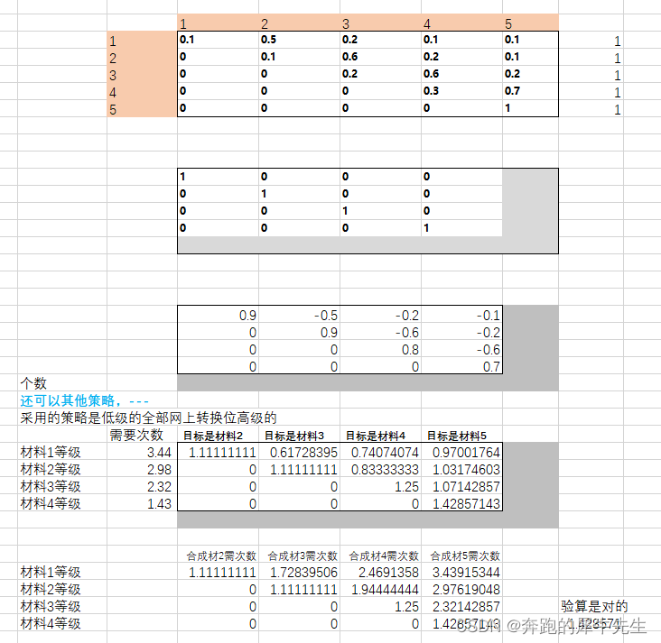 - 缺点,次数大了不好算,除非EXCEL有矩阵乘方函数(其实可以自己用VBA,利用mmult() 函数写一个 自定义函数的)