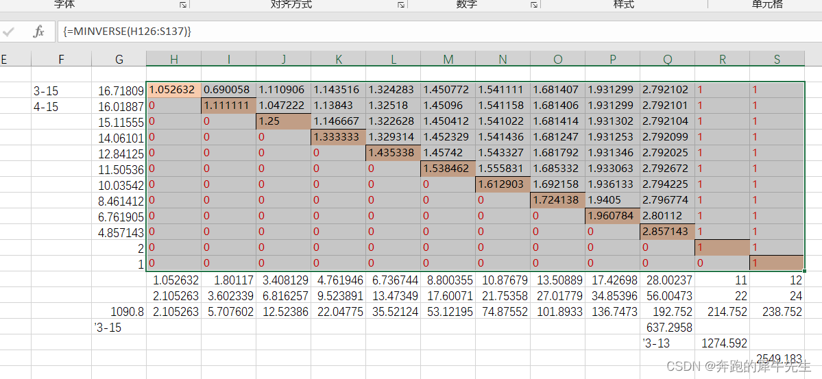 数组矩阵整体取反,数组公式,选择一整个矩阵,输出给一整个矩阵区域