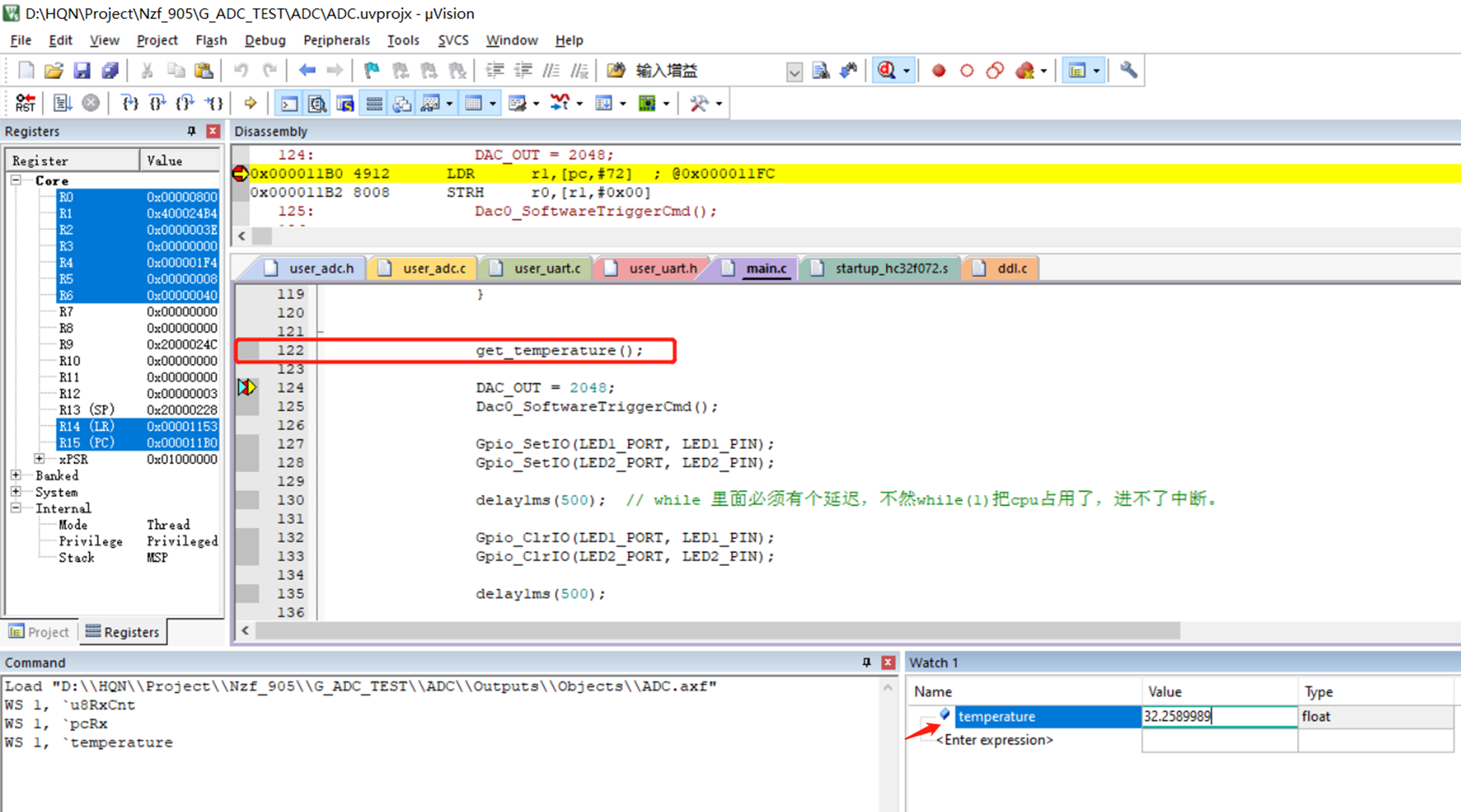 uint32_t u32AdcRestult;float temperature = 0;// ADC端口 配置