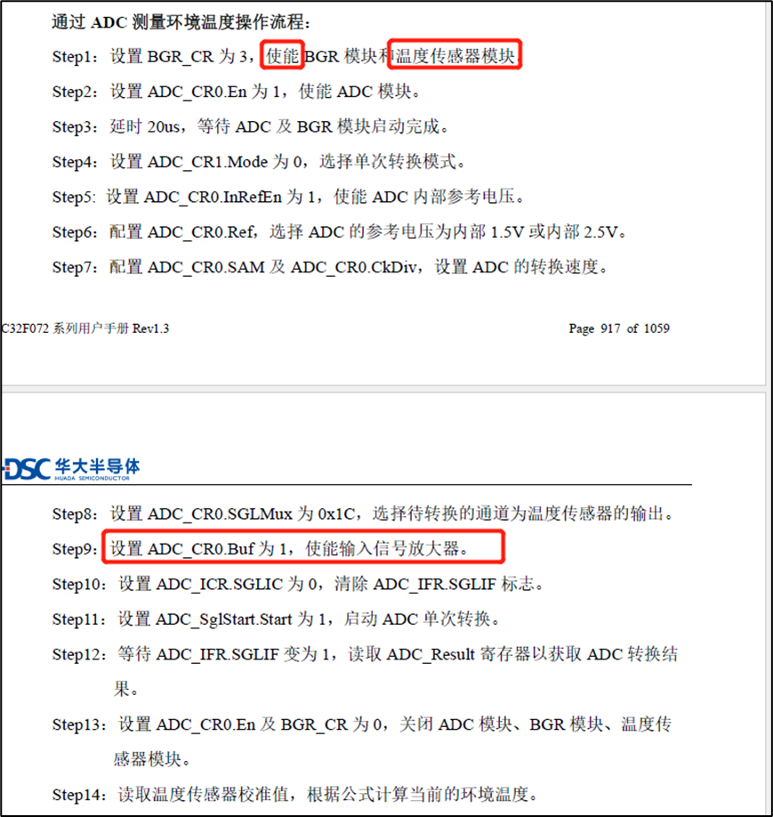 HC32_HC32F072FAUA_ADC内部温度传感器