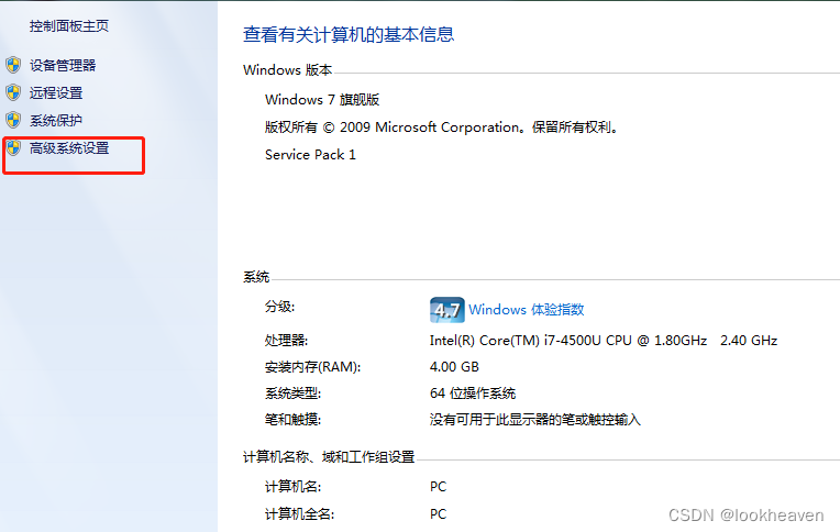 一、计算机右键,点击【属性】,在左侧栏寻找【高级系统设置】