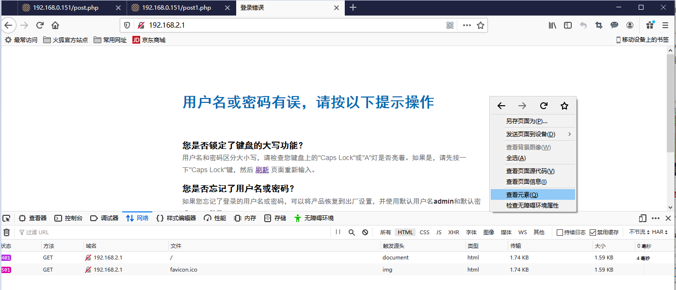 用Firefox打开登入页面,按F12或者在页面上右键-"查看元素",激活Firebug,如下图: