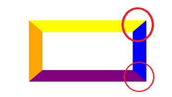 说明:我们来看四条边框相交的角,这几条边框相交线并不是直角,而是一个倾斜的状态,其实这就是我们三角形形成的一个方法;继续往下看哦。