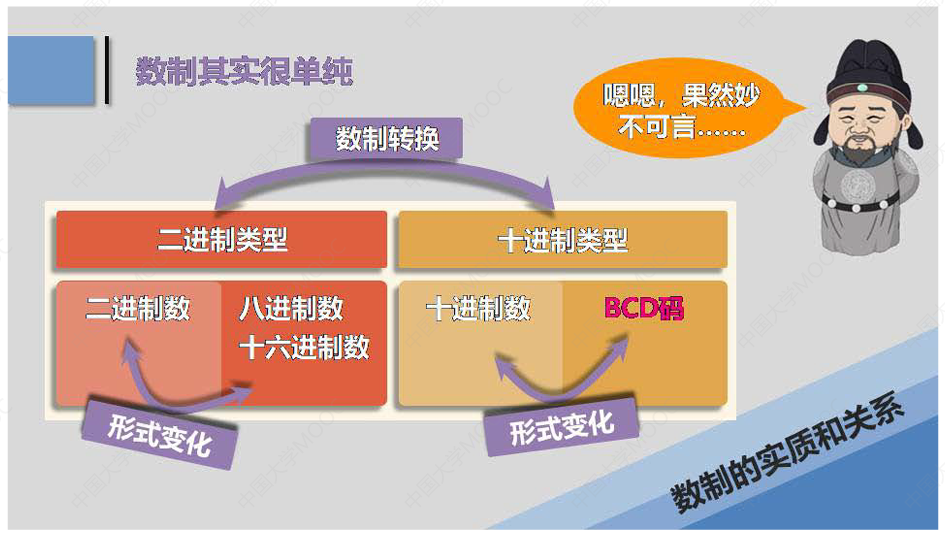 基本上,二进制数是用来给机器看的,八进制与十六进制是从二进制演变而来,核心就在于0和1;十进制数是符合人类常规认知的,也是人从小接触的进制,BCD码是从十进制演变而来,是用二进制表示的十进制数。研究数字电路就要从十进制的思维跳脱出来,重新认识二进制思维,重要的是思维上的转变。