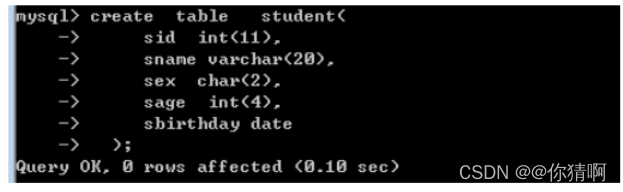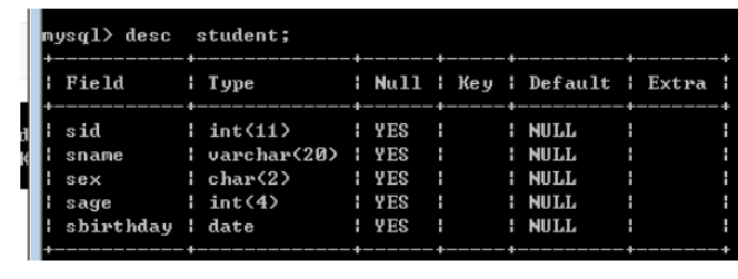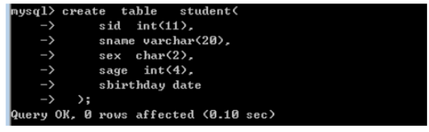 CREATE TABLE student(sid INT(11),sname VARCHAR(20),spwd VARCHAR(20),sbrithday DATE