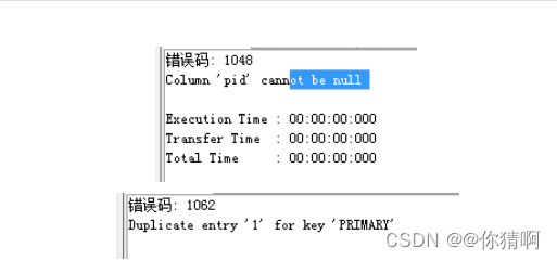 CREATE TABLE p2(pid INT(11),pname VARCHAR(20));#添加主键约束语法:alter table 表名 add PRIMARY KEY(列名)例子:ALTER TABLE p2 ADD PRIMARY KEY(pid)#删除主键约束alter table 表名 drop PRIMARY KEY例子:ALTER TABLE p2 DROP PRIMARY KEY