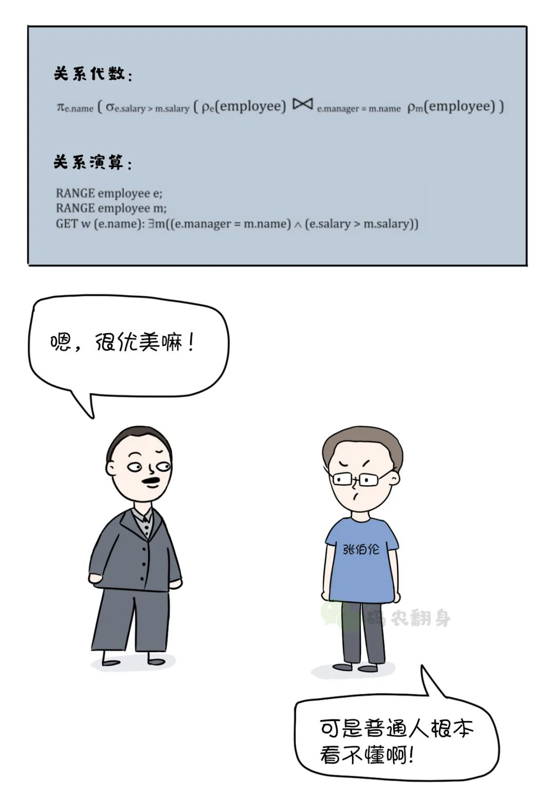 他们把关系称为表,然后把复杂的数学符号替换成简单的英语SELECT FROM WHERE, 这样普通人都能理解。