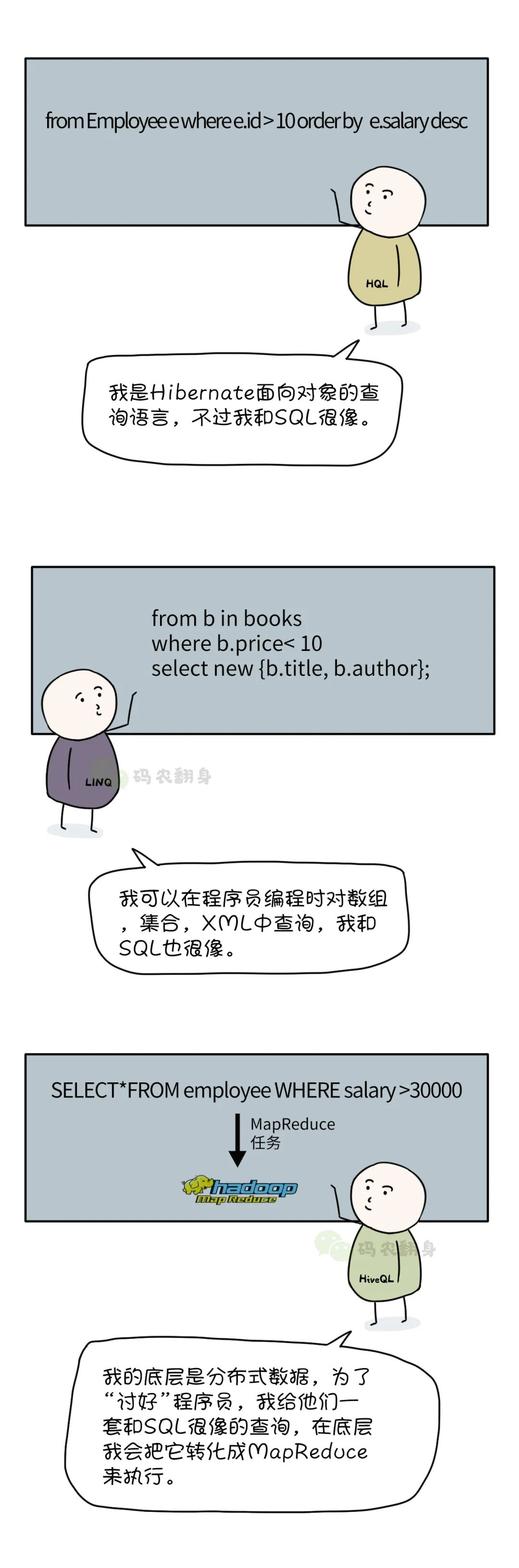 很多产品为了降低学习成本,虽然底层不是关系数据库,也努力向SQL靠近,尤其是SELECT、FROM 、 WHERE、Order By、Group等核心概念。