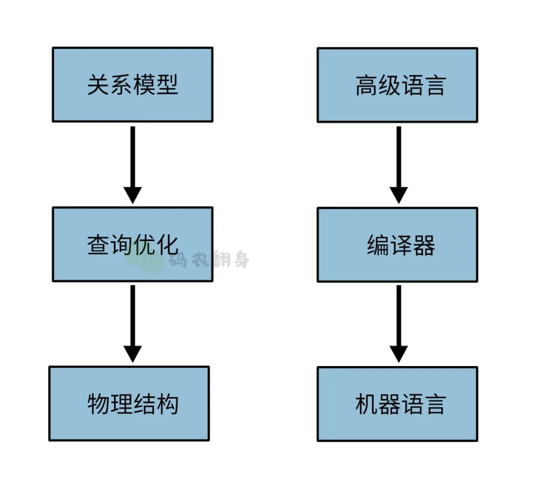 应该有个更高层的、声明式的语言来访问数据,完全和数据库的底层数据存储方式隔离。