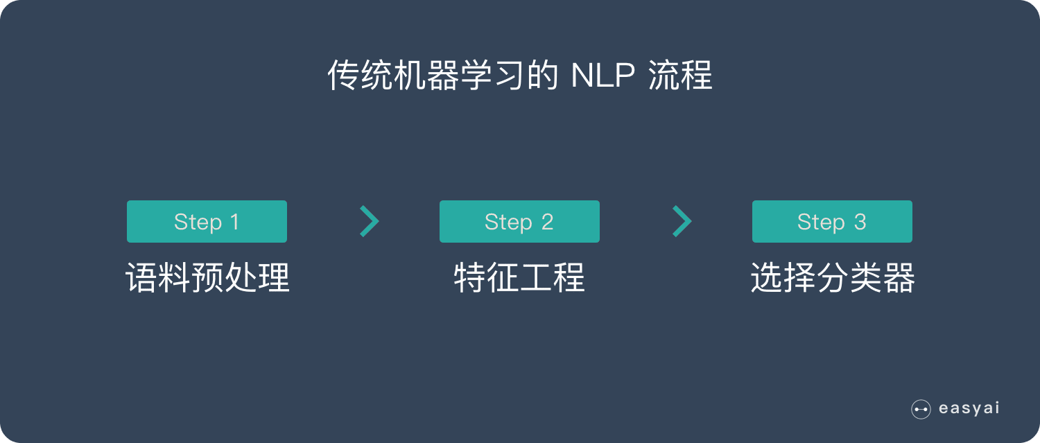 NLP 可以使用传统的机器学习方法来处理,也可以使用深度学习的方法来处理。2 种不同的途径也对应着不同的处理步骤。详情如下: