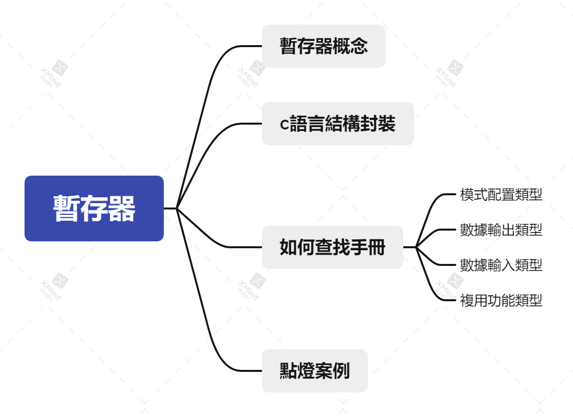 我们可以藉由控制引脚的输出以及输入来达到特定目,。而开发版上的引脚都被分配了一组独一无二的地址位置,透过更改这些地址储存的数值,就可以有效的控制引脚要怎麽输出、如何输出。因此我们可以把引脚当作控制的最基本单位,而暂存器就是引脚背后的控制原理