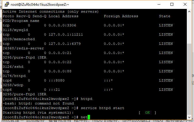 然后通过service httpd start 命令开启80端口即(httpd 的服务)