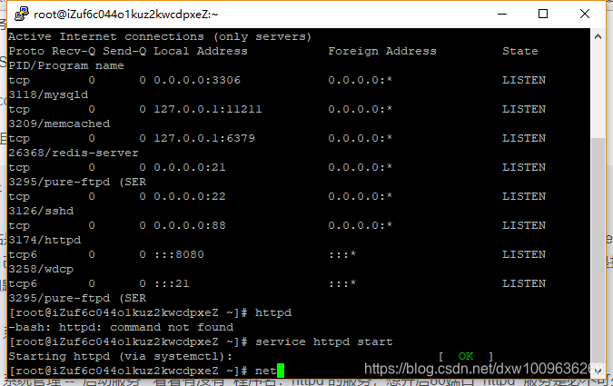 4:通过ssh软件 运行 service httpd start 也可以开启 httpd 服务