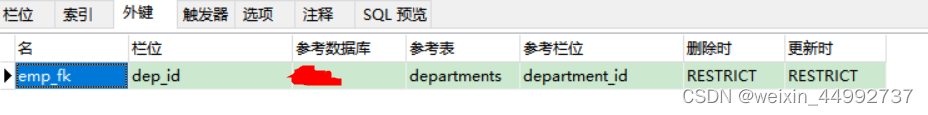 departments(department_id); 或在在Navicat中添加外键。外键名称常使用:表名_fk,表名_fk1表示。
