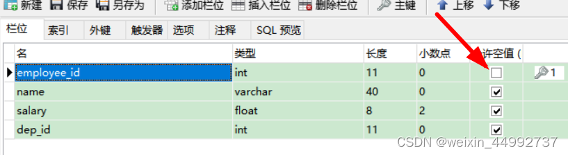alter table emp add primary key(employee_id);//选取employee_id作为主键