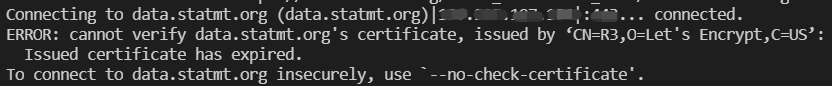 ERROR: cannot verify data.statmt.org's certificate, issued by ‘CN=R3,O=Let's Encrypt,C=US’: