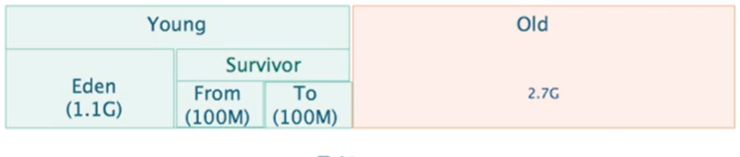 设置了JVM为4G。按照默认比例young:old=1:2,eden:s0:s1=8:1:1