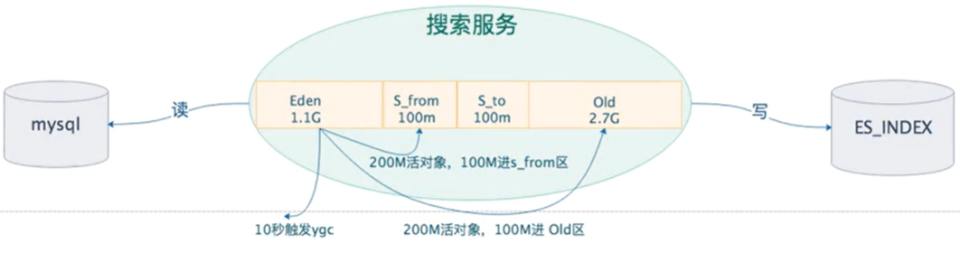 old区有2.7G,每10秒触发一次ygc,就有100m进old区。