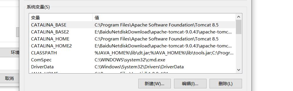 新建了两个变量名,值都为自己第二个或者第n个tomcat的位置(conf目录的上一级目录)