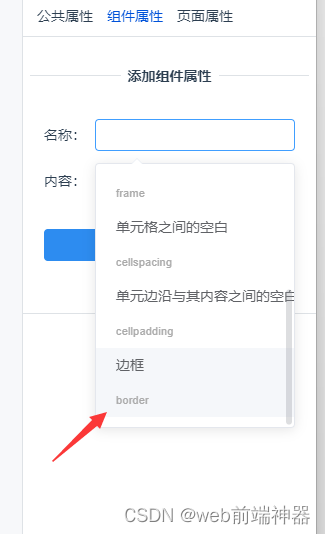 表格除了这些子元素以外,表格还自带属性。当然这些属性我们也记不住,去查文档效率又太低。我们可以继续通过guiplan一键插入属性即可,比如给表格添加边框,只需要选中边框然后插入进来即可。