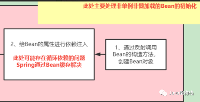 所谓的Bean的创建,其实就是指Bean对象通过构造方法,在堆内存中被创建出来的过程,此时站在Java的角度,该对象已经完成了初始化,但是内部的属性只拥有默认值,没有任何业务意义。