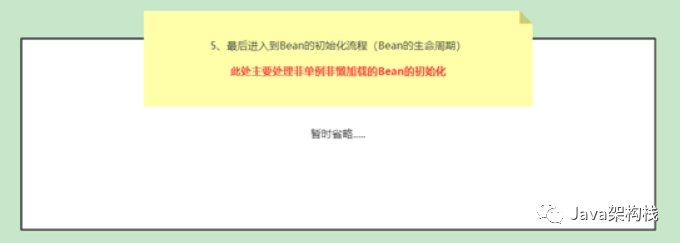 上一步中,已经通过主配置类的扫描将各种业务Bean注册到BeanFactory了,接下来就是执行各种Bean的初始化流程了,这个过程也就是Bean的生命周期执行过程,我们稍后再来解析。