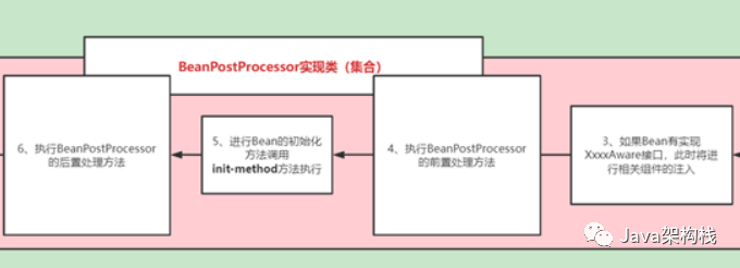 6、执行BeanPostProcessor的后置方法(通常是一个集合,形成一个调用链,依次执行);
