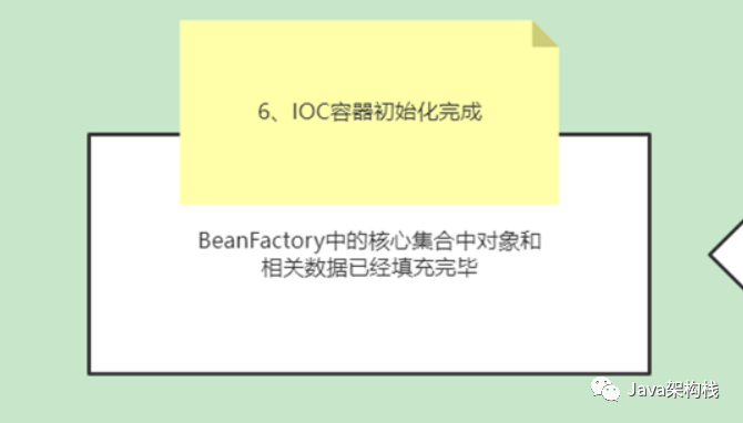 Bean初始化完成后,整个BeanFactory也就初始化完成了,IOC容器也就完成,相关数据集合也填充完毕,等待后续的业务执行。
