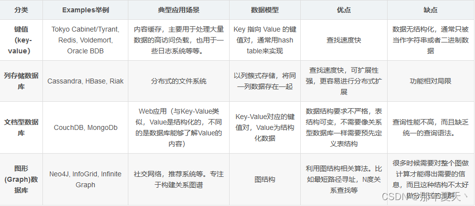 NoSQL(NoSQL = Not Only SQL ),意即“不仅仅是SQL”,它泛指非关系型的数据库。随着互联网2003年之后web2.0网站的兴起,传统的关系数据库在应付web2.0网站,特别是超大规模和高并发的交友类型的web2.0纯动态网站已经显得力不从心,暴露了很多难以克服的问题,而非关系型的数据库则由于其本身的特点得到了非常迅速的发展。