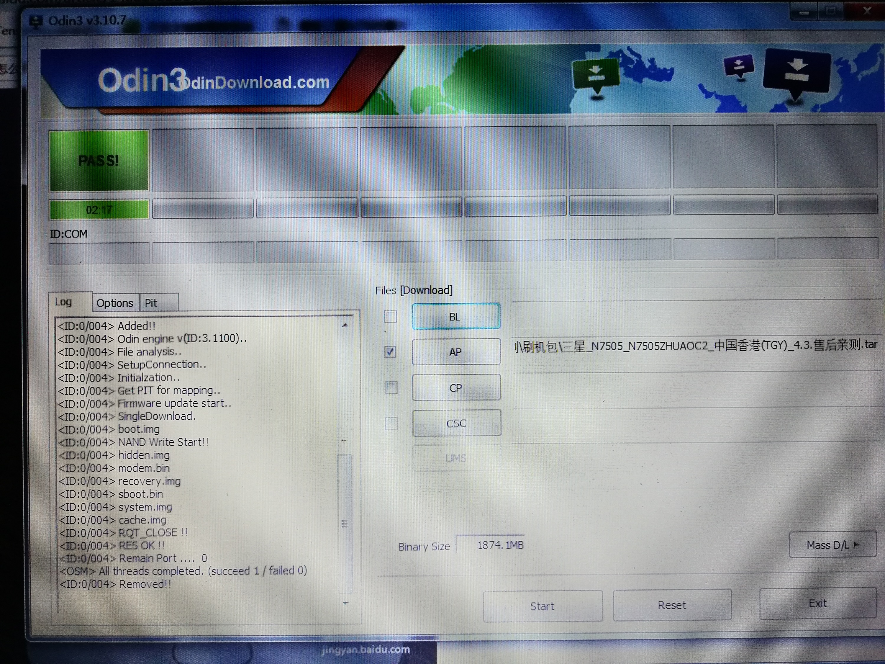 手机型号:三星SM-N7505(之前一直卡在开机logo)