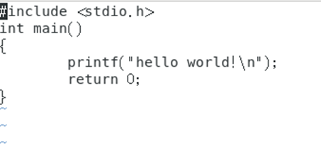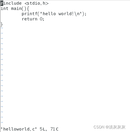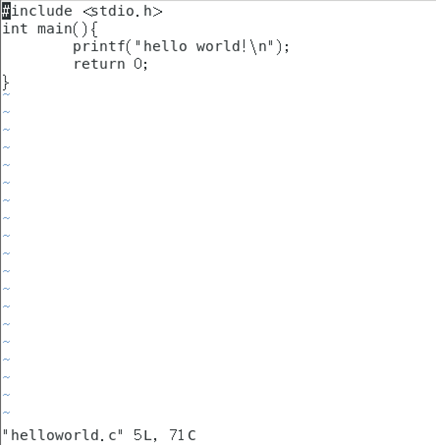 打开vi全屏编辑器,编写名为“helloworld.c”的c语言程序