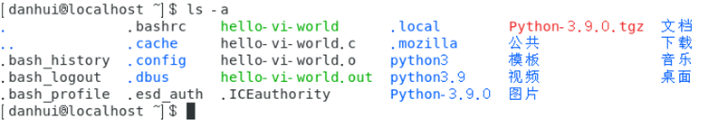 | (-a列出目录下所有的文件,包括以.开头的隐含文件) |