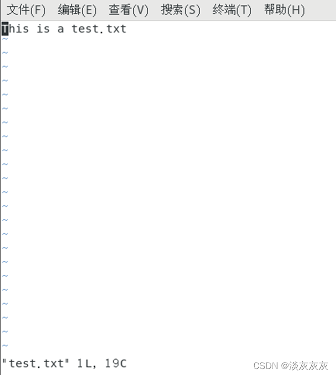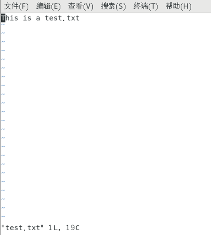 打开vi全屏编辑器,编写名为“test.txt”的txt文本