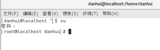 进入如图界面,‘$’变成‘#’说明登入root账户成功。