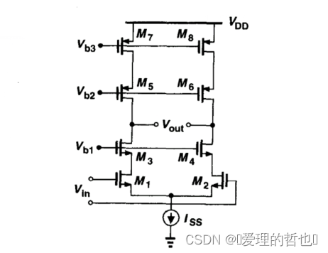 我们可以采用共源共栅来增大PMOS和NMOS的输出阻抗,形成共源共栅级的差动形式: