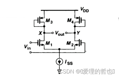 对于给定的偏置电流和输入器件的尺寸,电路的增益与PMOS管的过驱动电压成比例变化。为了得到更大的电路增益,必须减小(W/L),从而增大,降低X点和Y点的共模电平。