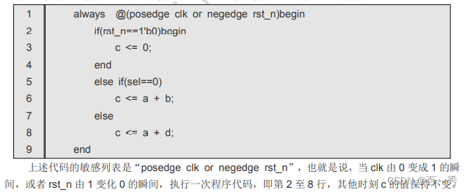 2、不要将信号放在时序逻辑敏感列表。例如:( always @(posedge d )begin )