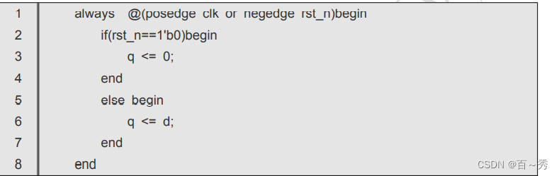 rst_n(复位)低电平有效,clk上升沿时将d赋值给q。