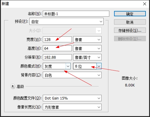 步骤1:打开PS,新建一个128*64像素的PSD文件。