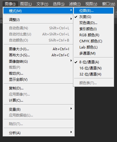 步骤3:图像——模式——位图,将模式由“灰度”改成“位图”。出现是否拼合图层,选确定,弹出的“位图”对话框,设置如下,选确定。(这步一 定要注意用位图生成的.bmp文件,以便字模软件导入)