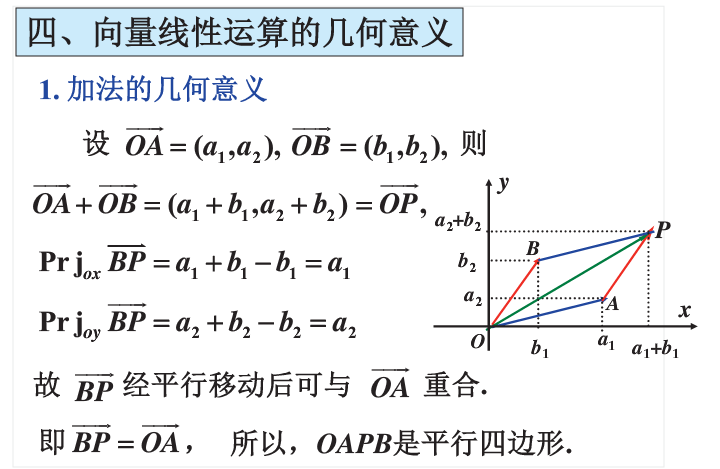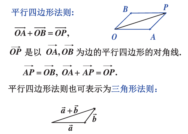 1. 向量加法的几何意义(平行四边形法则、三角形法则)