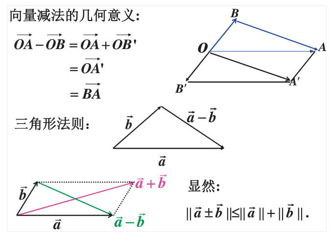 2. 向量减法的几何意义(平行四边形法则、三角形法则)