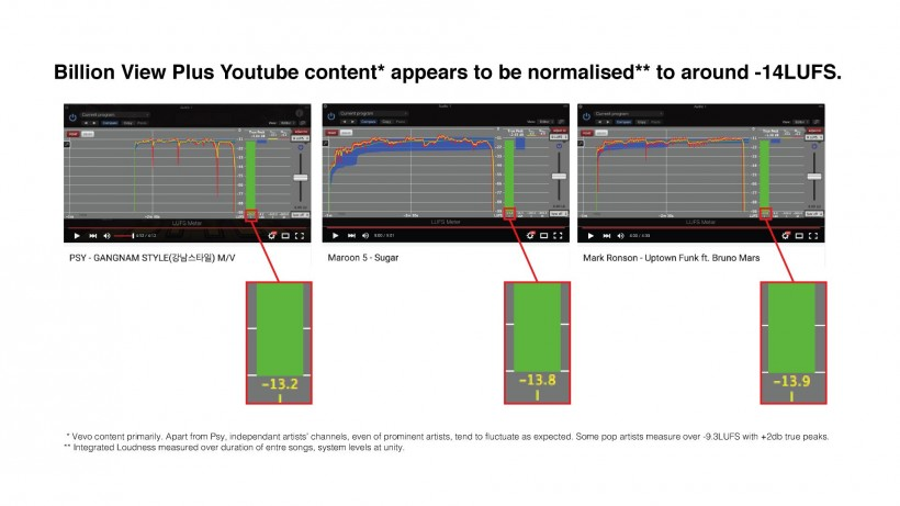 YouTube似乎也对一些官方视频做了音频的标准化,调整到了-14和-12 LUFS之间...