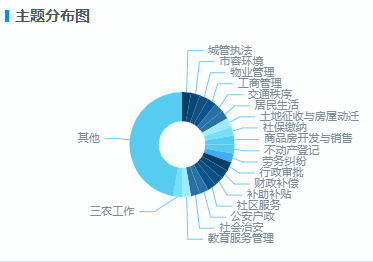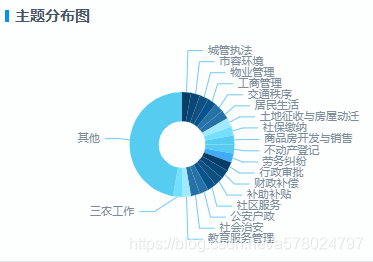 {b}: {c} ({d}%)'},//最小的扇区角度(0 ~ 360),用于防止某个值过小导致扇区太小影响交互avoidLabelOverlap: true,color: ['#073E67','#074879','#0F5081','#07548C','#2671A5','#2671A5','#A0EAFF','#74DFFF','#56CDF0','#56CDF0','#3FACF7'],series: [{name: '主题分布',type: 'pie',radius: ['20%', '45%'],minAngle: 10,startAngle: 90,label: {normal: {show: true,formatter: '{b}',fontSize: pxToVh * 0.81,color: '#7D8B9B'//, '{b|{d}% {c}件}'// formatter: ['{a|{b}}'].join('\n'),// rich: {// a: {// color: '#7D8B9B',// fontSize: pxToVh * 0.81// }// // b: {// // color: '#394351',// // fontSize: pxToVh * 0.81// // }// }},emphasis: {show: true}},labelLine: {normal: {show: true,lineStyle: {color: '#75C8F6'}}},data: dataList}]}myChart.setOption(option)return myChart},