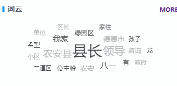this.wordCloud = [{name: '物业管理',value: 10000},{name: '占道停车',value: 6181},{name: '公交车、出租车管理',value: 4386},{name: '油烟扰民',value: 4055},{name: '扬尘污染',value: 2467},{name: '道路、桥梁、隔离栏的维护',value: 2244},{name: '噪声分贝测试',value: 1898},{name: '违章搭建',value: 1484},{name: '环境卫生综合整治',value: 1112}]