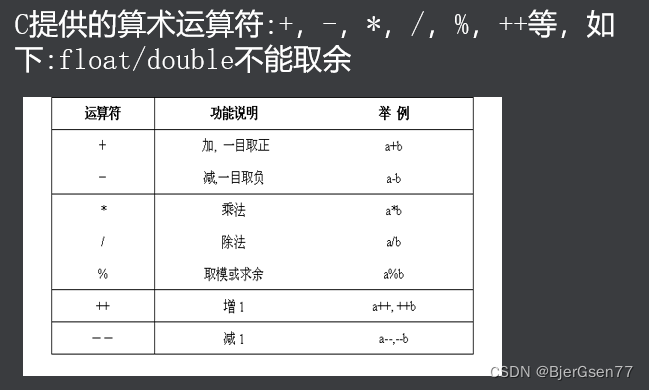 算术运算符: