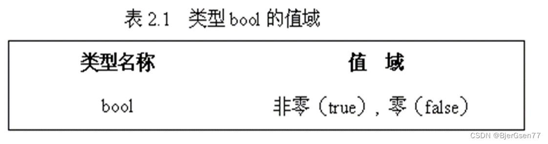 逻辑类型。只有两个量true和false,表示逻辑真值和逻辑假值。