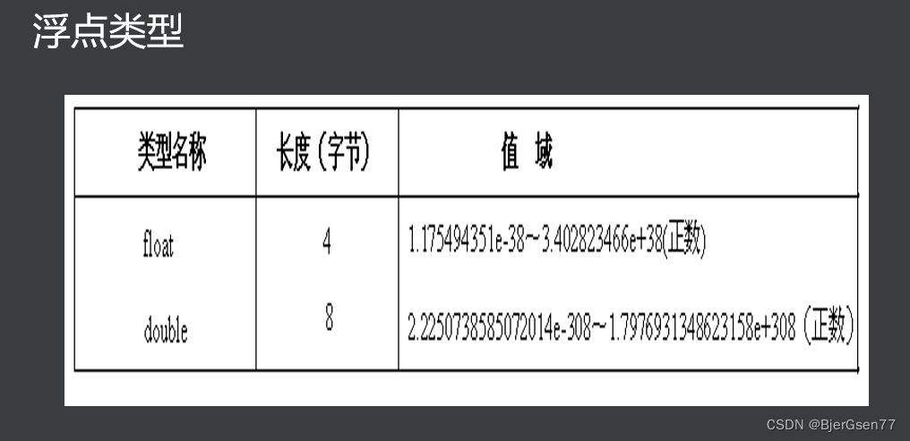 浮点类型。包括float和double。